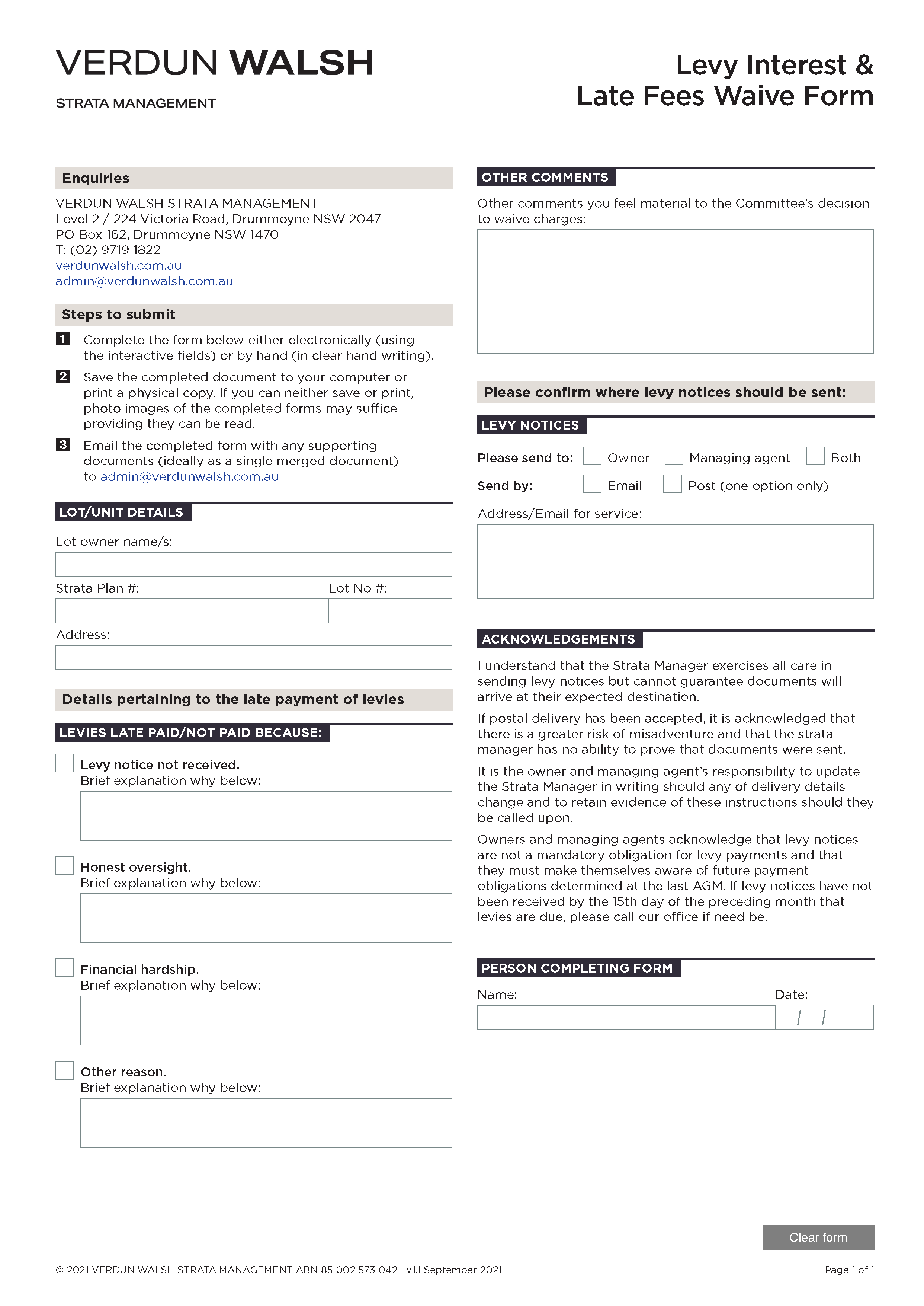 Fillable PDF forms minimise transcription errors and provide users with clear and efficient layouts.
